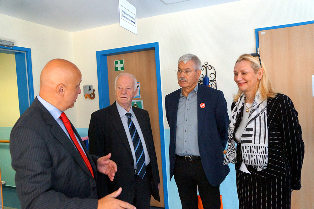 Gemeinsam mit dem Stadtrat Stephan Richter, dem Geschäftsführer der SOPHIA Rudolf Kujath, dem stellv. BVV-Vorsteher Klaus Mätz und dem stellvertretenden Fraktionsvorsitzen Ulrich Brettin, suchte Liane Ollech das Gespräch mit Bewohnern und der Geschäftsführung des Vollzeitpflegehauses.